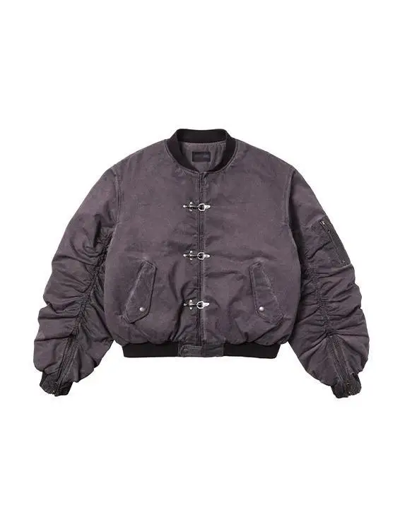 2025 OEM Custom Wholesale High Quality Puffer Jackets Embroidery Men Leather Sleeves Custom Bomber Jacket